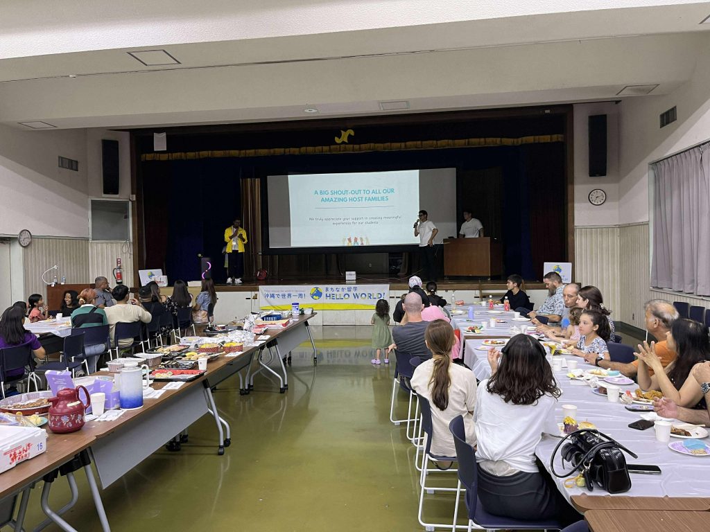 The event took place on Sunday evening at one of our most common venues for Welcome and Farewell Ceremonies in Okinawa City. It was attended by over 50 participants, including members of 15 host families and their friends! Many families brought homemade food from their country, which made the atmosphere even more friendly and diverse, just like our HelloWorld community!